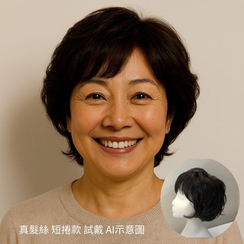品名 :全手工科技記憶透氣真髮絲 短捲款(全手工勾製而成遮白髮)