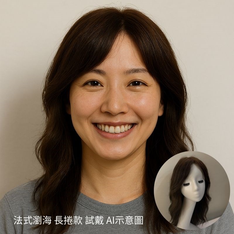 品名 :法式瀏海全手工透氣內網整頂真髮絲 長捲款 (全手工勾製而成遮白髮)