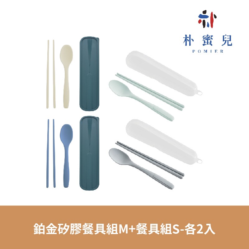 鉑金矽膠餐具組M(附收納盒)*2+鉑金矽膠外出餐具組S(附收納盒)*2