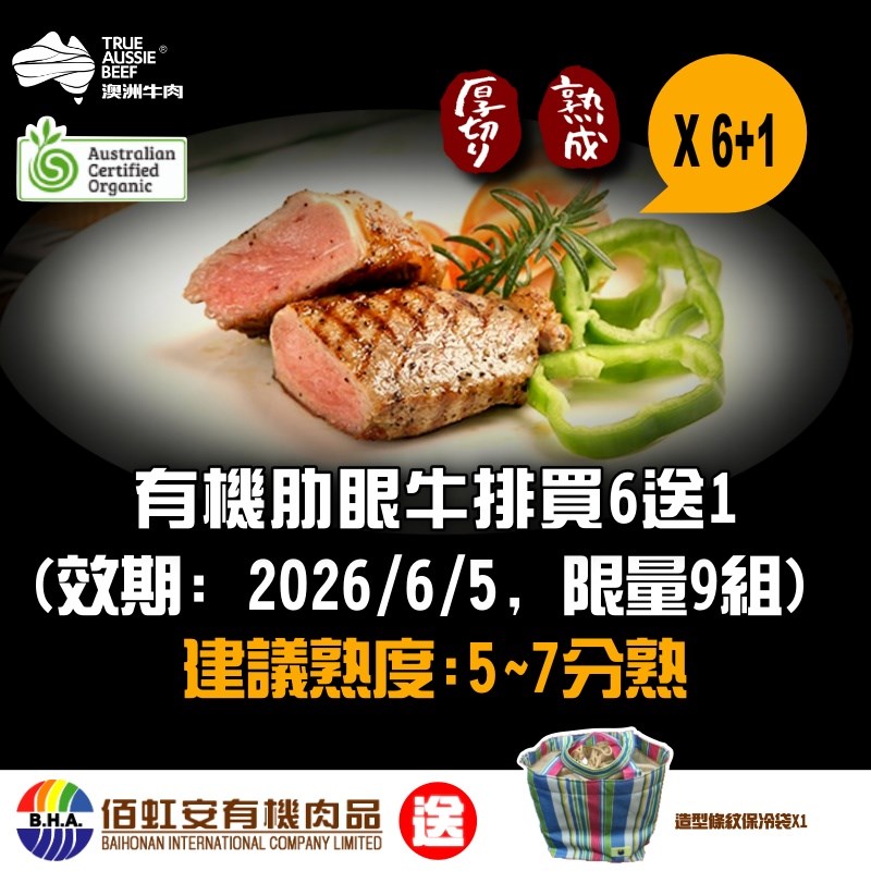 【佰虹安】有機肋眼牛排買6送1(效期: 2026/6/5, 限量9組)再送贈品X1