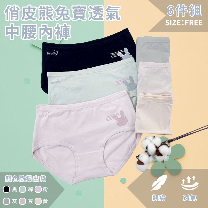 【卡妮兒】俏皮熊兔寶透氣中腰內褲 FREE(混色6件組)