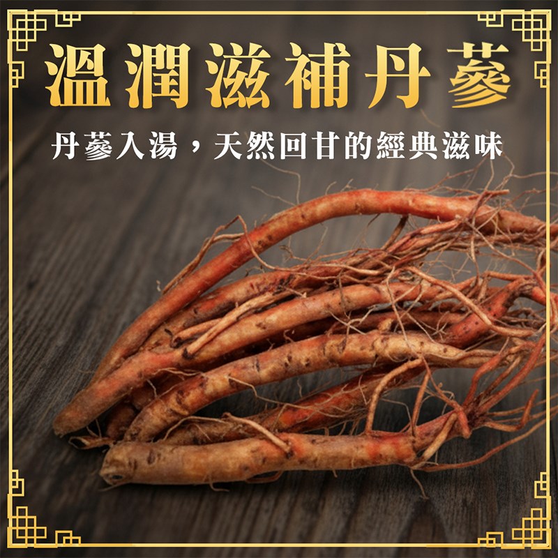 一鍋丹蔘雞湯,滿載真材實料。溫潤補氣的丹蔘,與鮮嫩雞肉相互交融,湯頭清澈甘甜。