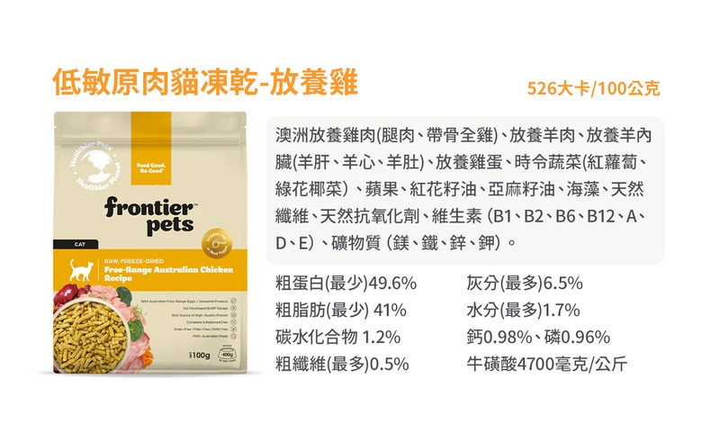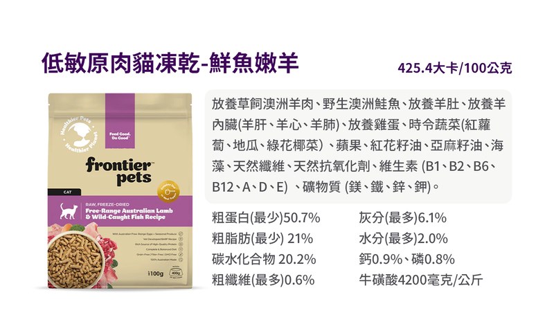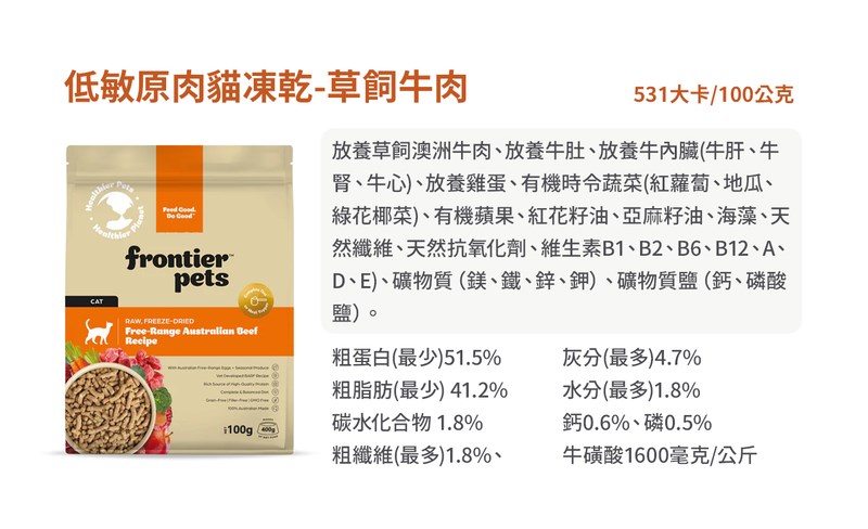 粗纖維(最多)1.8%、 牛磺酸1600毫克/公斤