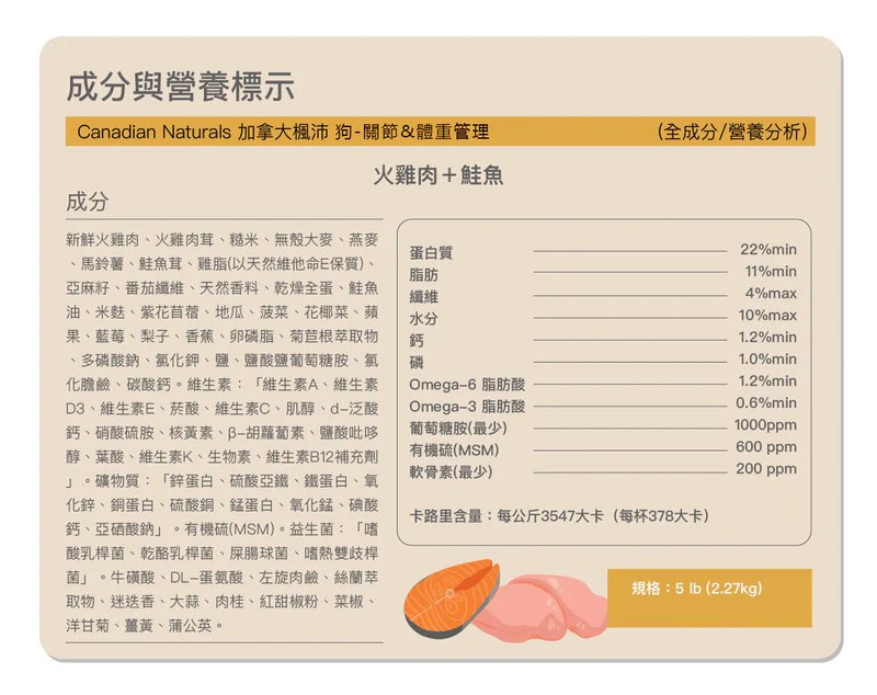 品名:狗-關節&體重管理-火雞肉+鮭魚5lb