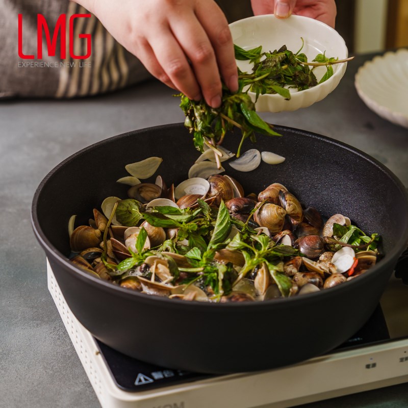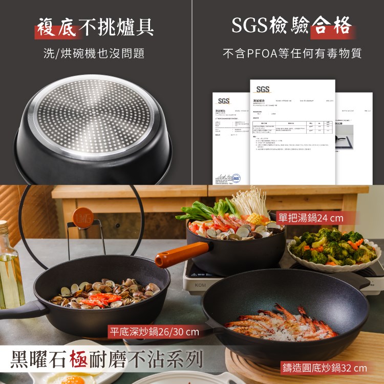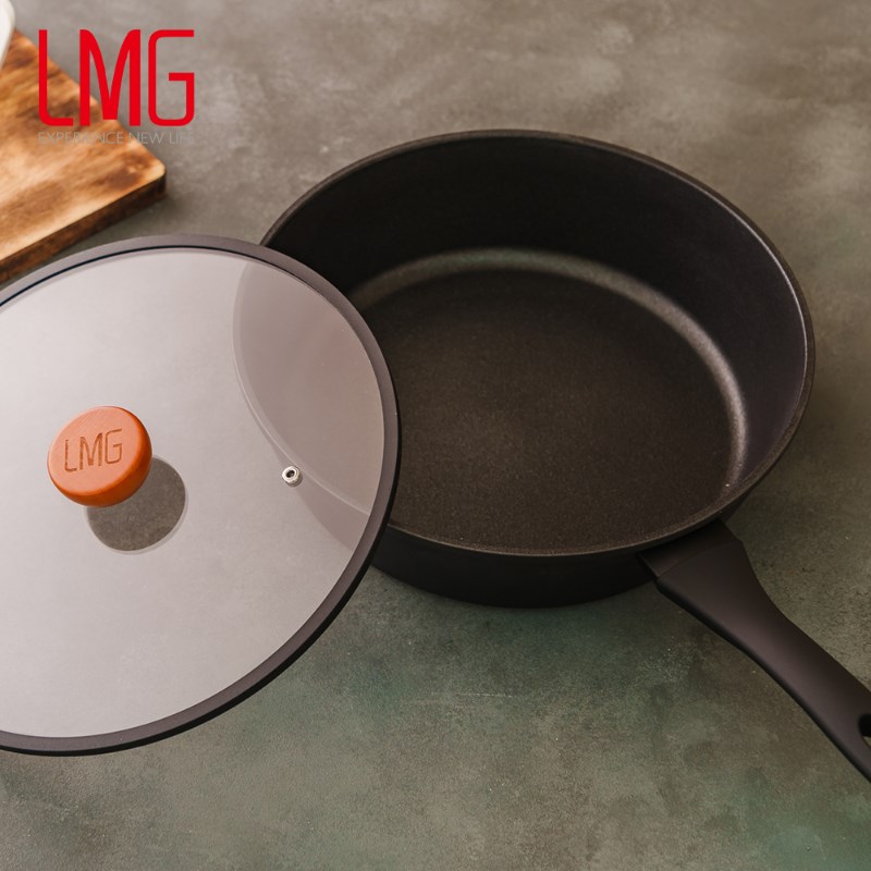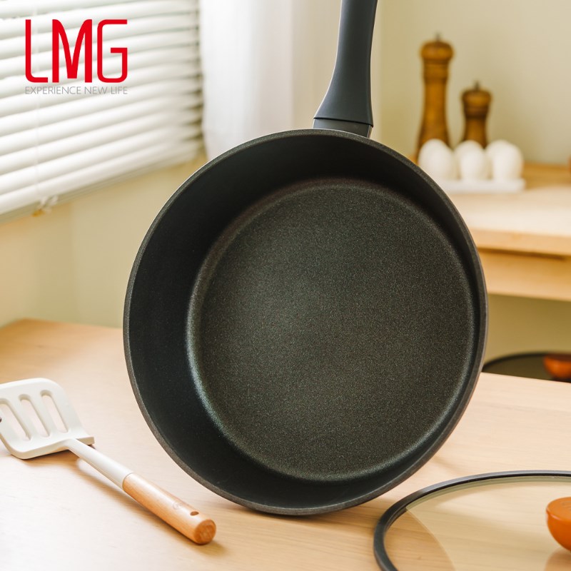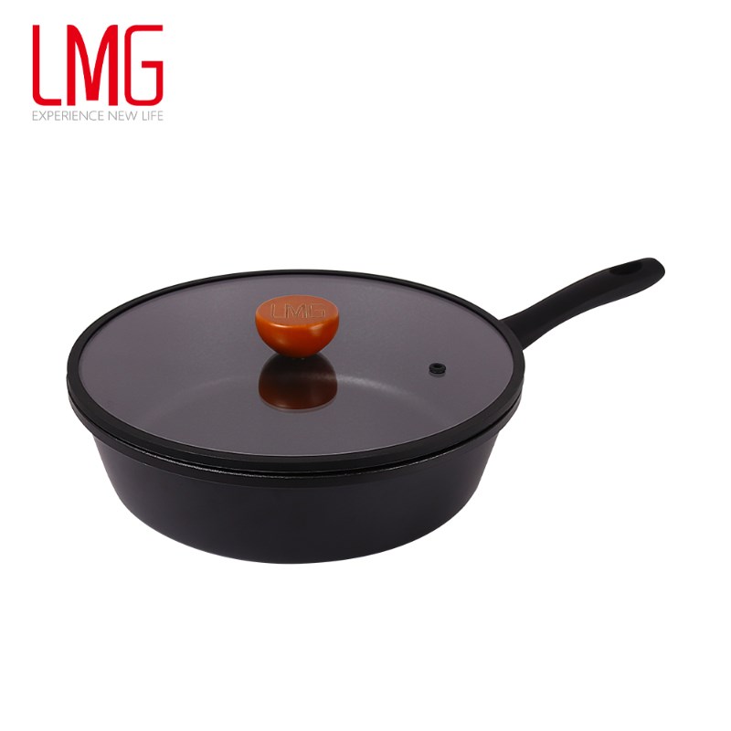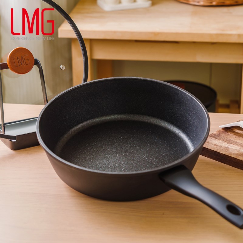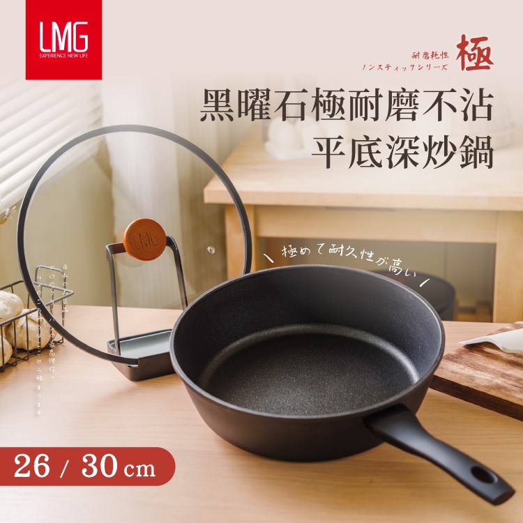 【LMG】黑曜石極耐磨深炒鍋30CM-附玻璃鍋蓋