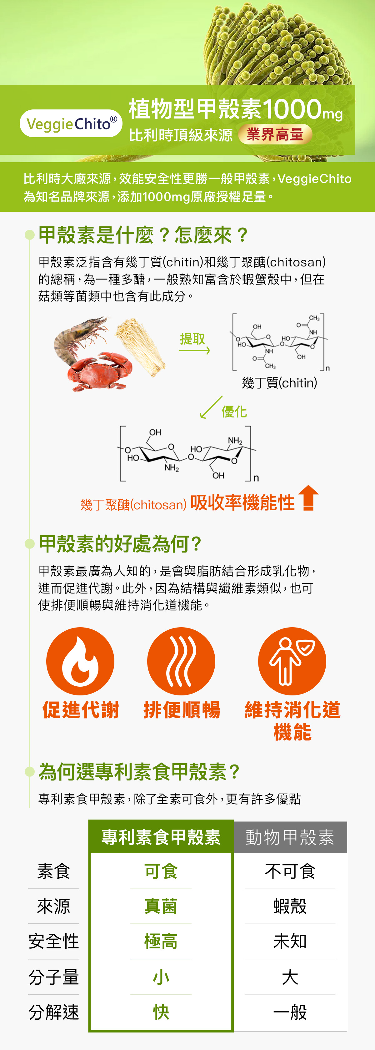 • 比利時VeggieChito®甲殼素1000mg,業界高量