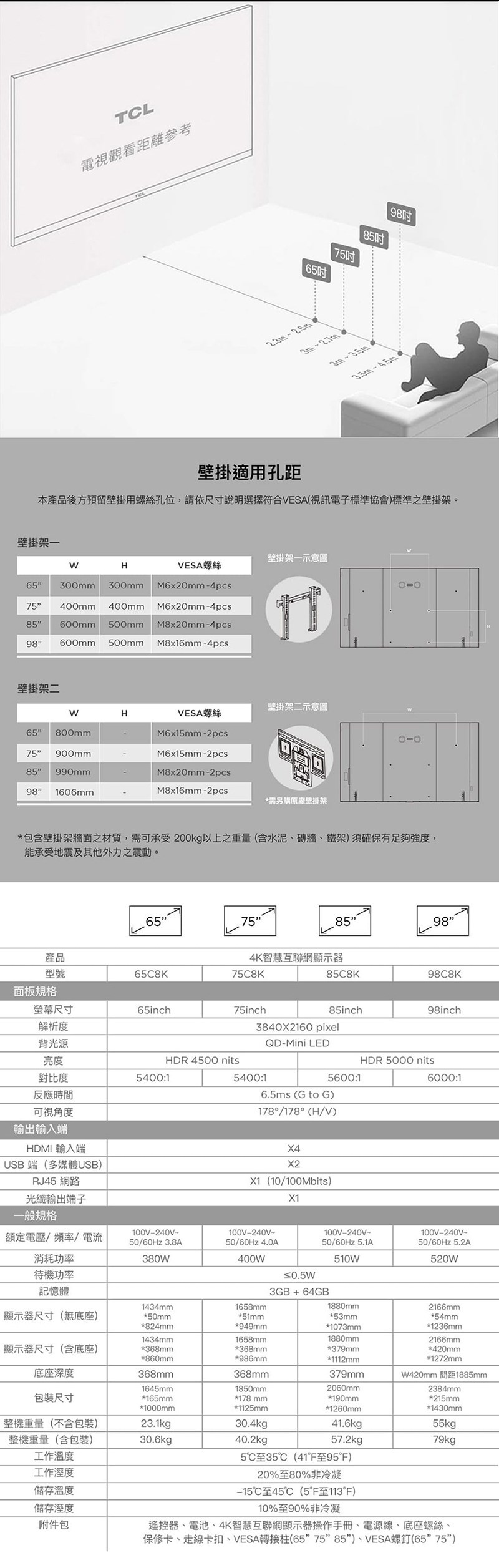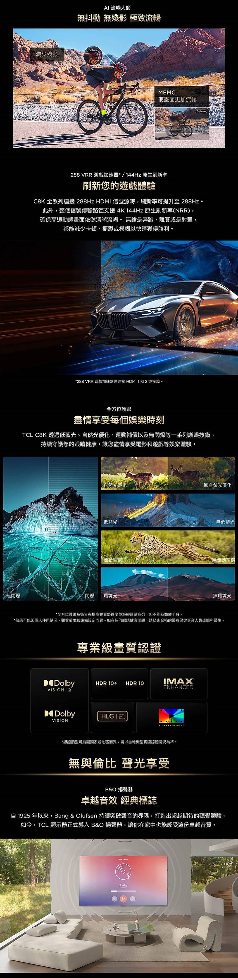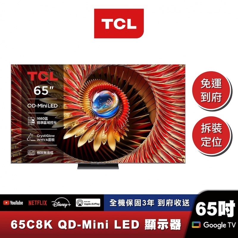 【TCL】65C8K頂級QD-Mini LED Google TV 量子智能連網液晶顯示器