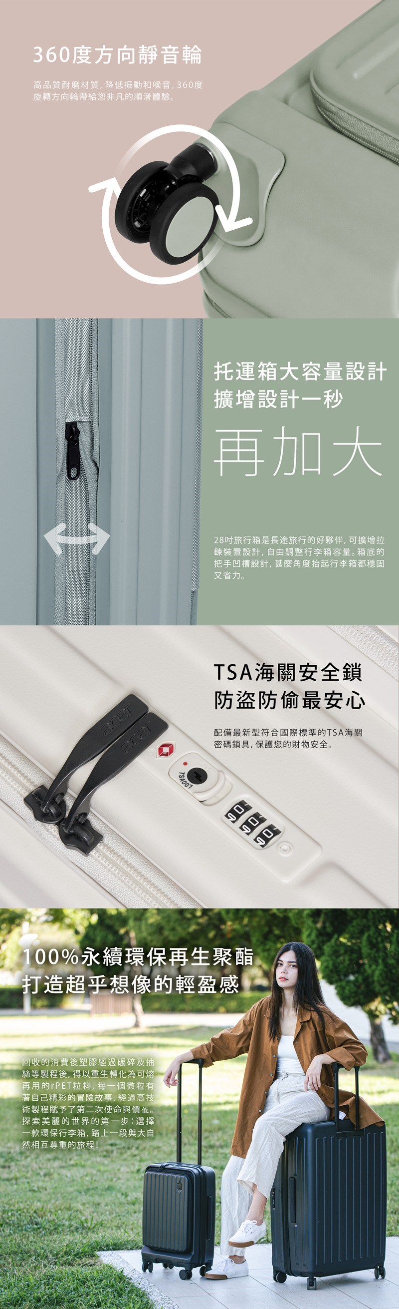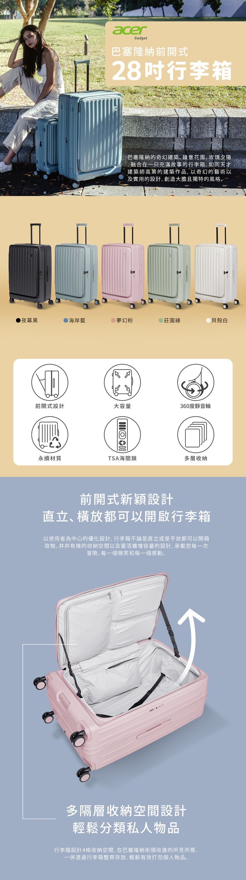 【Acer】巴塞隆納前開式行李箱-28吋-貝殼白/海岸藍/莊園綠/夢幻粉