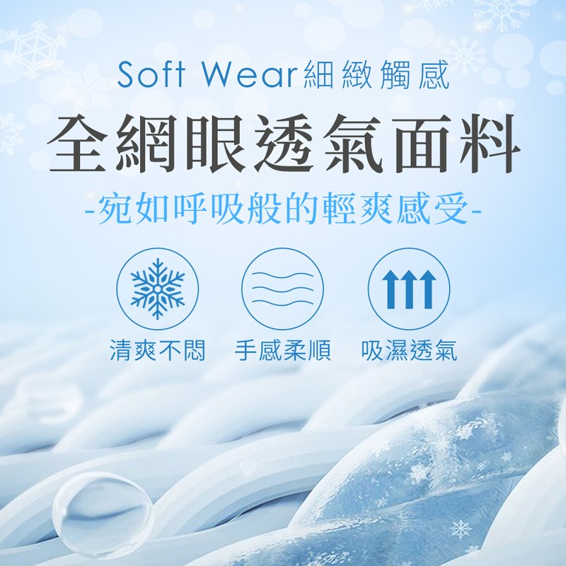 全網眼透氣、無痕材質,舒適不悶熱、手感柔順、明亮鮮豔
