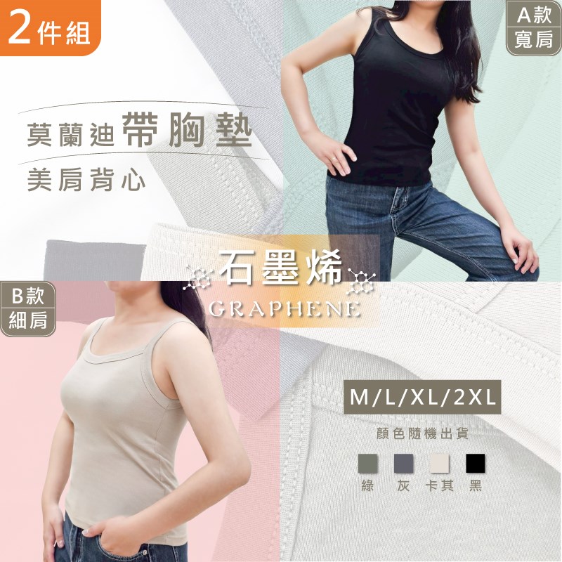 【卡妮兒】網美必備石墨烯莫蘭迪美肩帶胸墊背心 寬肩/細肩 M/L/XL/2XL(混色2件組)