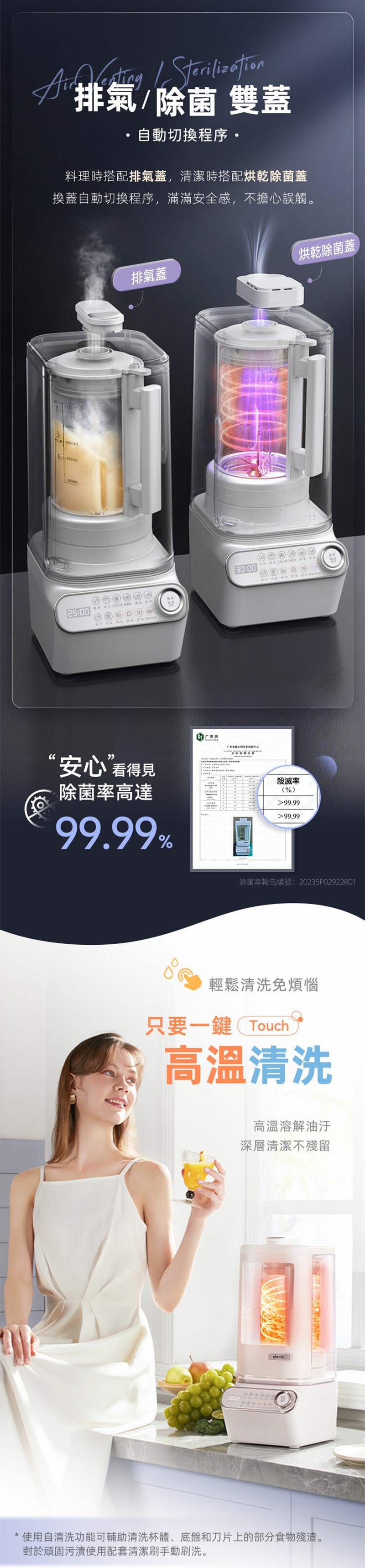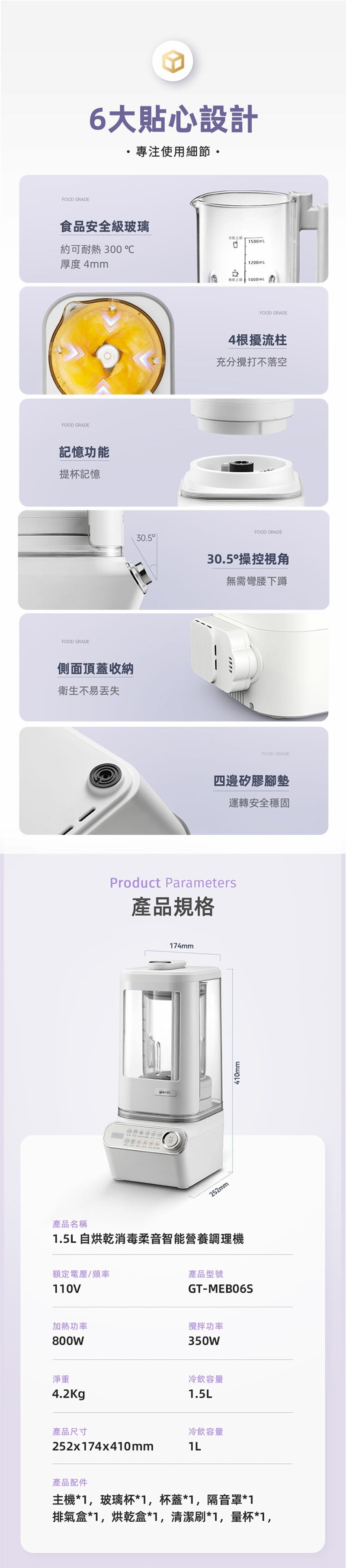 配件:隔音罩*1/烘乾(除菌)蓋*1/排氣蓋*1/玻璃杯*1/杯蓋*1/清潔刷*1/量杯*1
