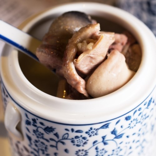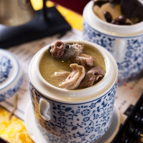 胡椒豬肚雞湯是廣東客家酒席必備湯品,加入Q彈雞肉及爽脆株杜一起煨煮,鮮美濃湯配上辛辣胡椒,清爽又輕濕。
