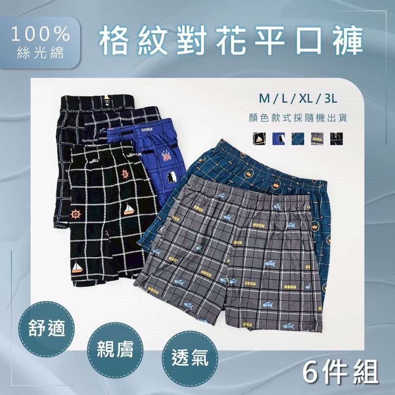 【卡妮兒】格紋對花舒適寬鬆男平口褲 M / L / XL / 3L(混色6件組)