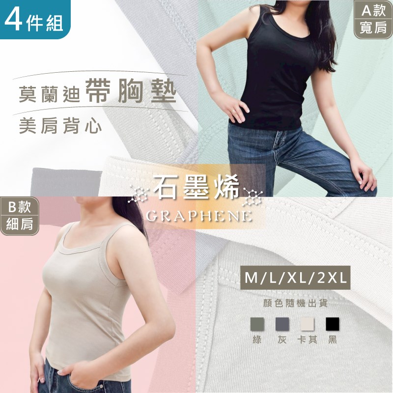 【卡妮兒】網美必備石墨烯莫蘭迪美肩帶胸墊背心 寬肩/細肩 M/L/XL/2XL(混色4件組)