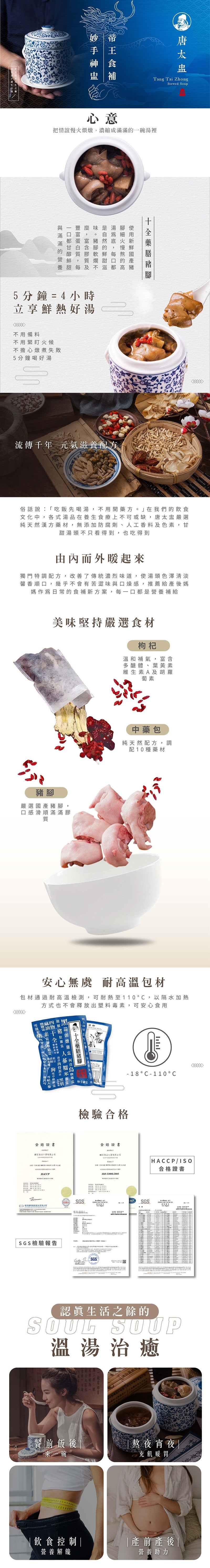 - 軟式盅湯包裝,加熱方便、體積小不占冰箱空間