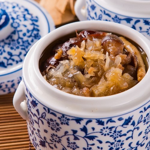 採用東北特有之蛙種,其雌蛙輸卵管乾燥後製成「雪蛤油」,加上銀耳、紅棗及人蔘等食材熬製而成。甜湯呈現晶瑩剔透,一口喝下,冰凉消暑。雪蛤又名蛤士蟆,是為古代中國皇帝才能食用的高檔食材,加上銀耳富含膠質與花旗蔘補充元氣,為忙碌的一天加點活力。甜湯冷熱皆可食用,其豐富的膠原蛋白,被譽為男女皆宜的最佳營養滋補聖品