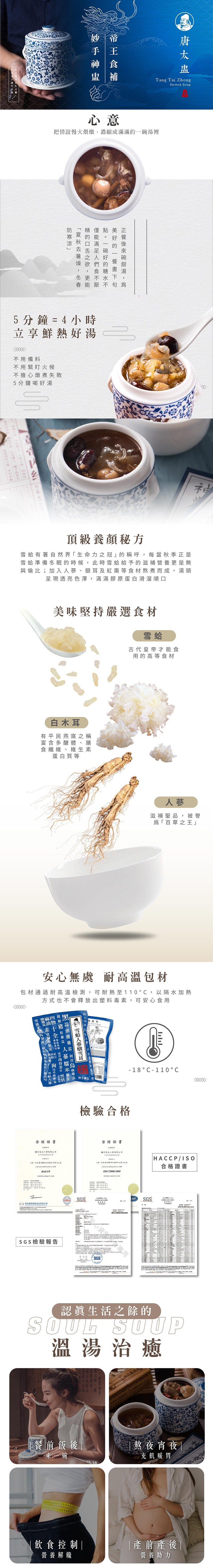 -軟式盅湯包裝,加熱方便、體積小不占冰箱空間