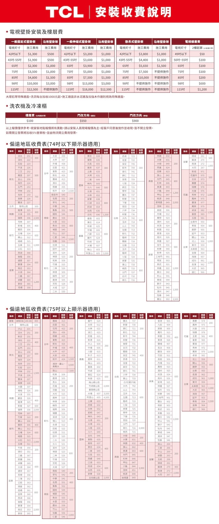 ※請務必測量好尺寸大小、預留空間以及搬運路徑是否可通行,如當日無法順利安裝則會收取空趟費+整新費