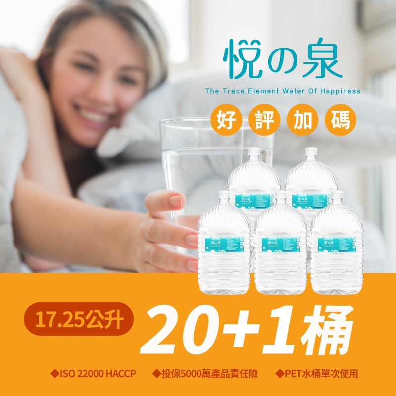 商品內容:悅之泉17.25公升桶裝水X20+1桶 (分次到貨)
