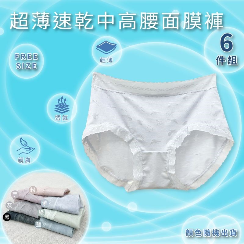 【卡妮兒】超薄速乾中高腰面膜褲 FREE(混色6件組)