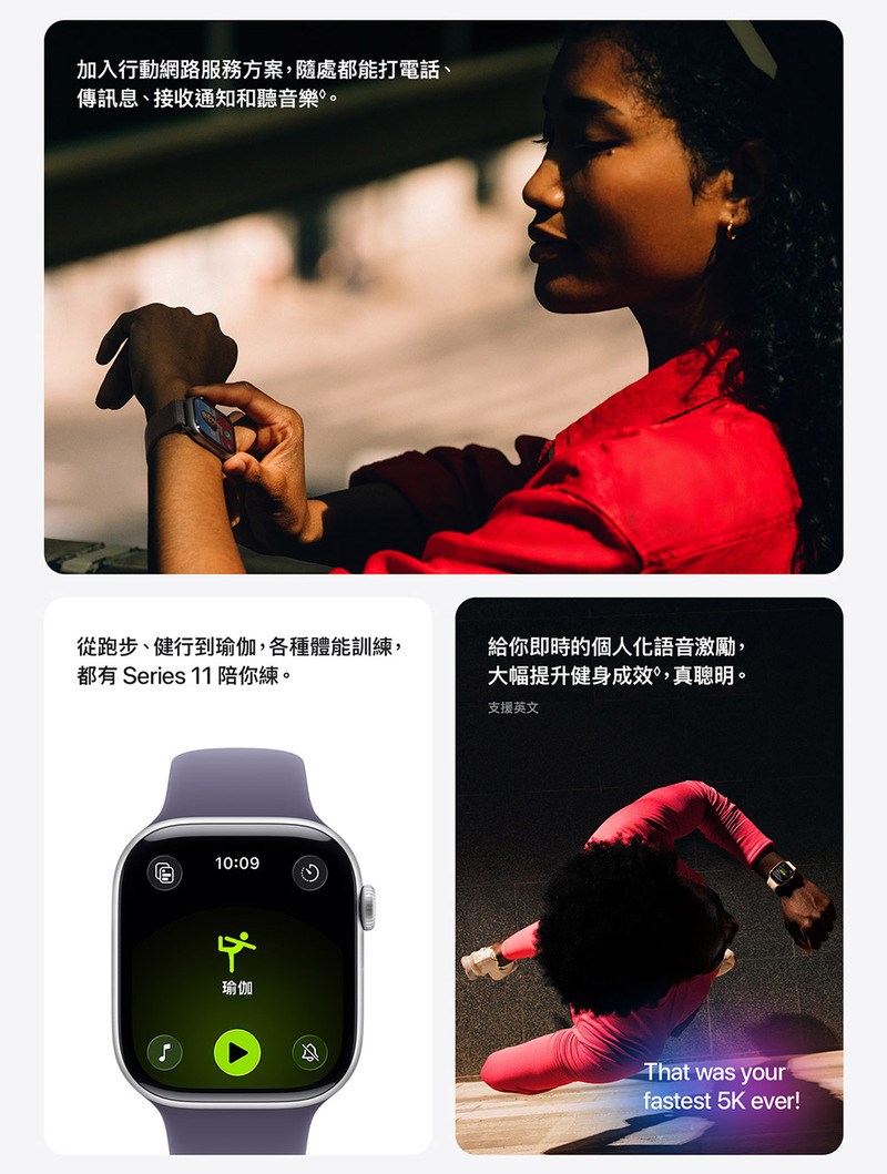 • 個人化運動體驗:: 結合Apple Intelligence,全新「Workout Buddy」功能可根據個人數據提供語音激勵。