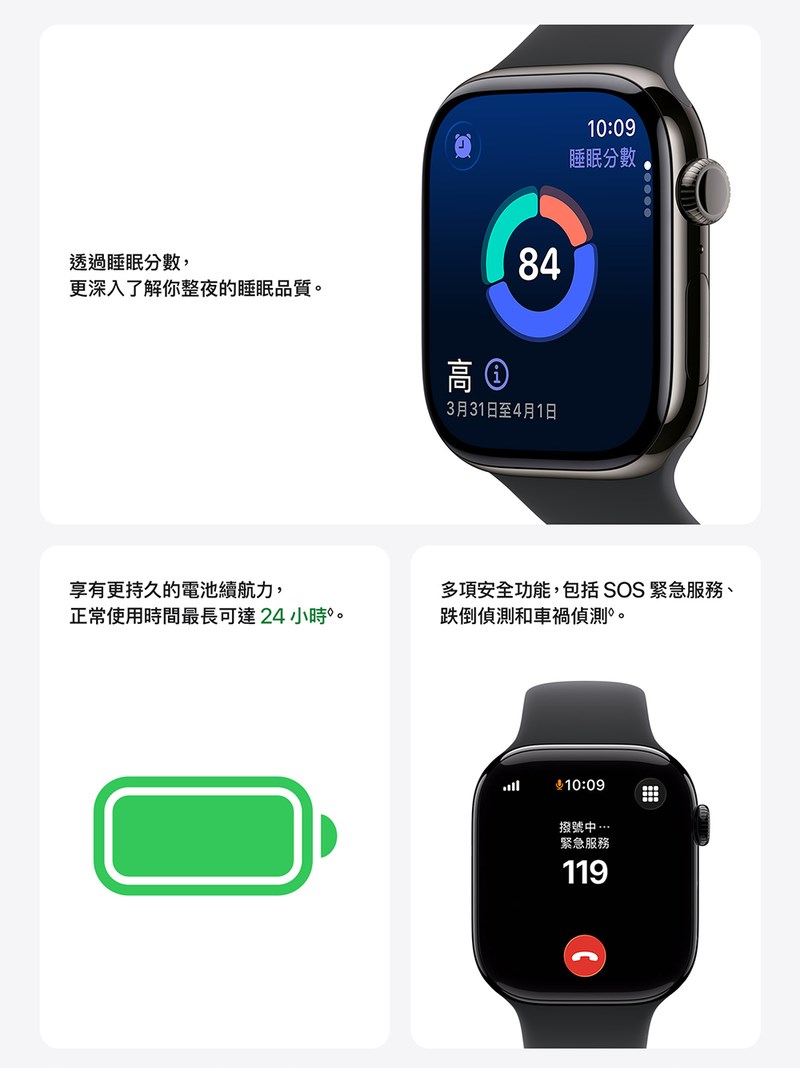 • 睡眠品質掌握:: 全新的「睡眠評分」功能,將睡眠品質以數據分類與分數呈現。