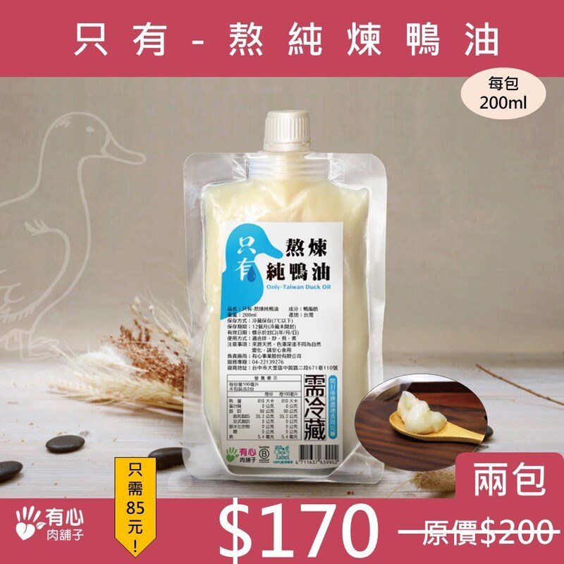 【有心肉舖子】只有-熬煉純鴨油2入組