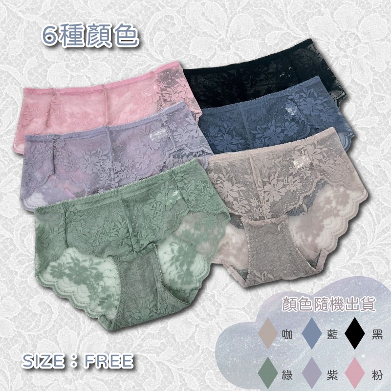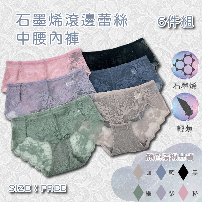 【卡妮兒】石墨烯滾邊蕾絲中腰內褲 FREE(混色6件組)