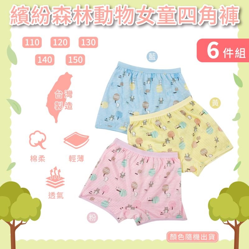 【卡妮兒】台灣製繽紛森林動物女童四角褲 110/120/130/140/150(混色6件組)