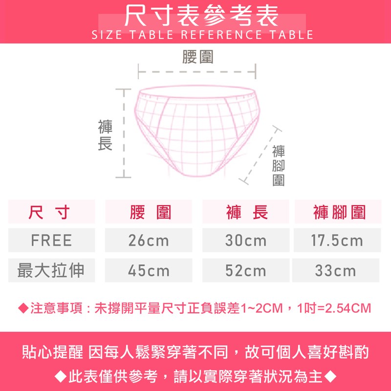 貼心提醒: 基於保障個人衛生,貼身內褲,請恕無法提供退換服務。