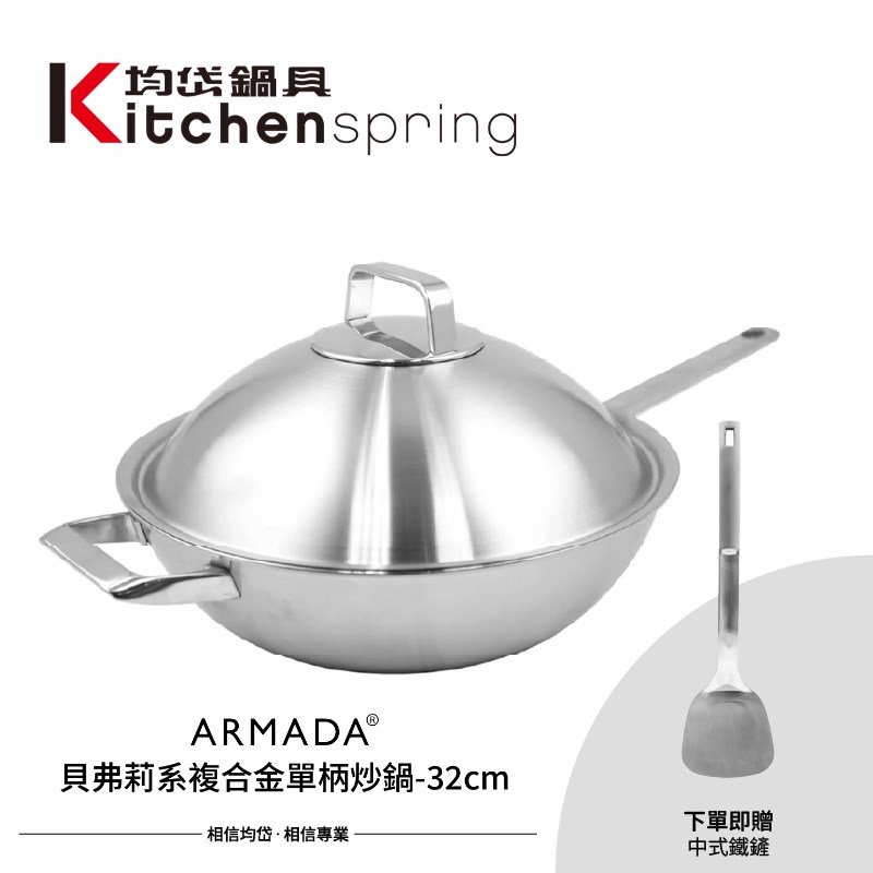 【ARMADA】貝弗莉系列 複合金單柄炒鍋32CM 贈 中式鐵鏟X1