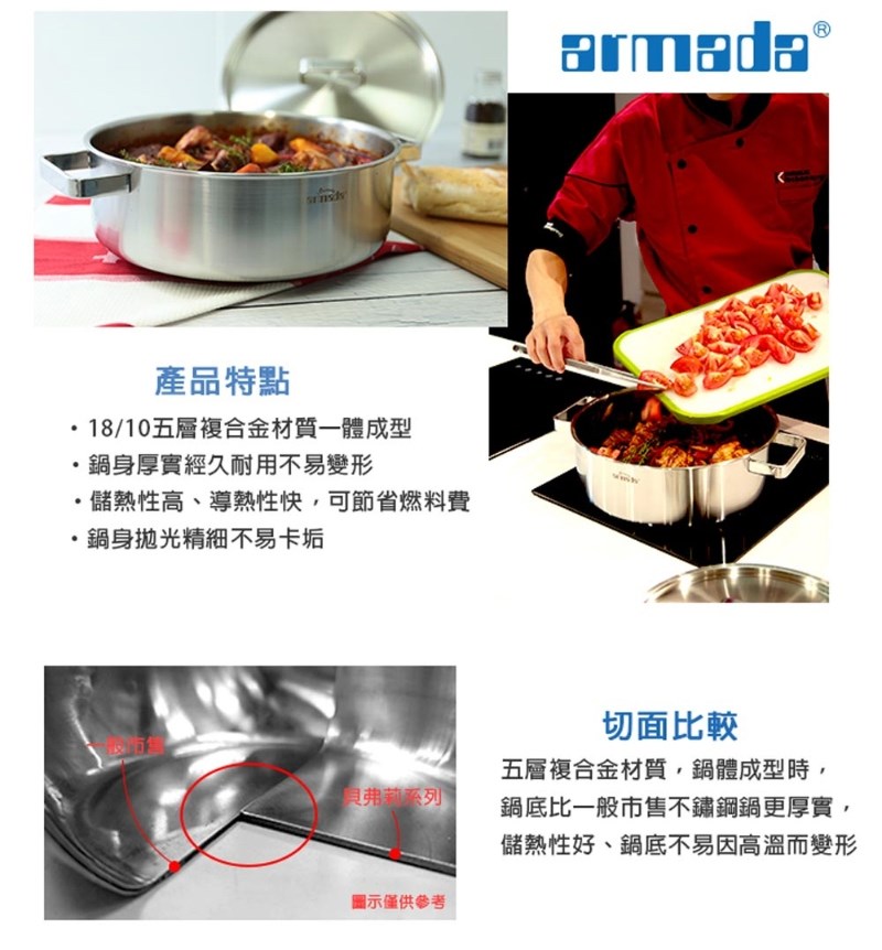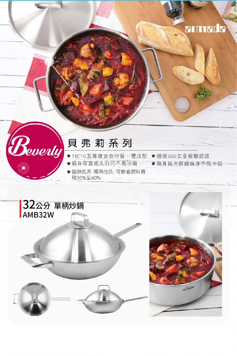 • 品名  :   【ARMADA】貝弗莉系列複合金 單柄炒鍋32CM 附 不銹鋼蓋