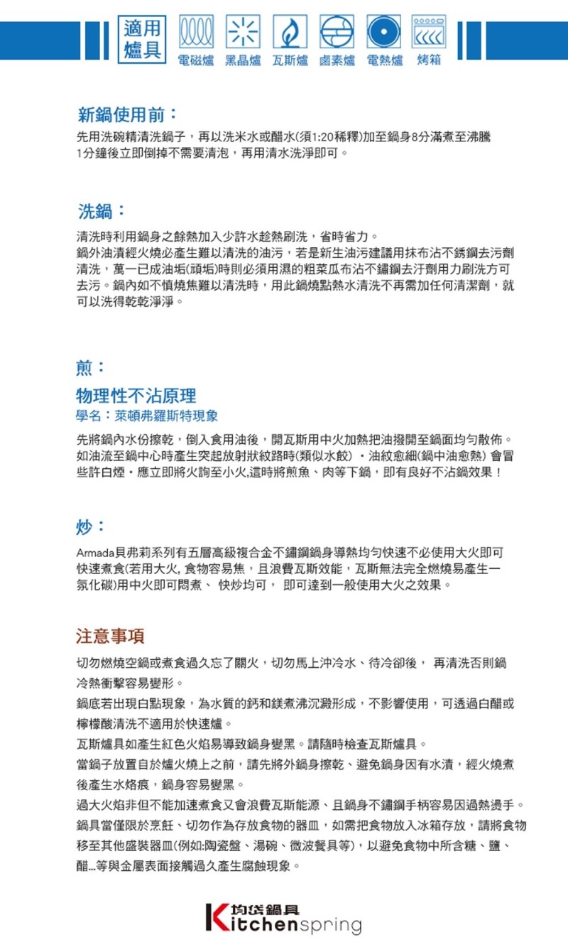 • 適用爐具  :    瓦斯爐,電爐,電陶爐,鹵素爐,電磁爐,IH爐