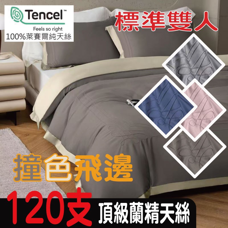 品名: 撞色飛邊 120支萊賽爾頂級蘭精天絲 床包組 (標準雙人四件套)