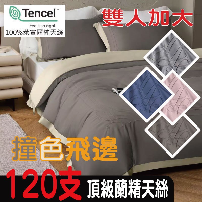 【精精寢俱】撞色飛邊 120支萊賽爾頂級蘭精天絲 床包組 (雙人加大四件套180x186cm)
