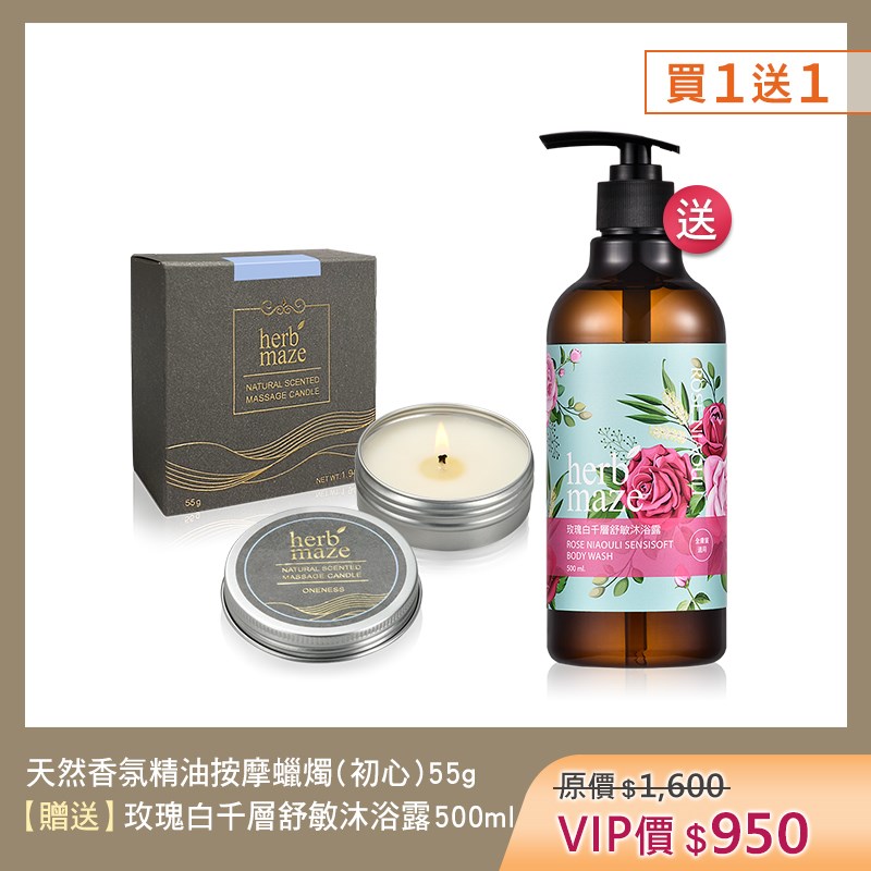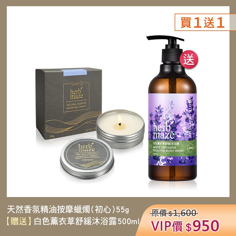 天然香氛精油按摩蠟燭55g*1 【限時加贈】 沐浴露500ml*1