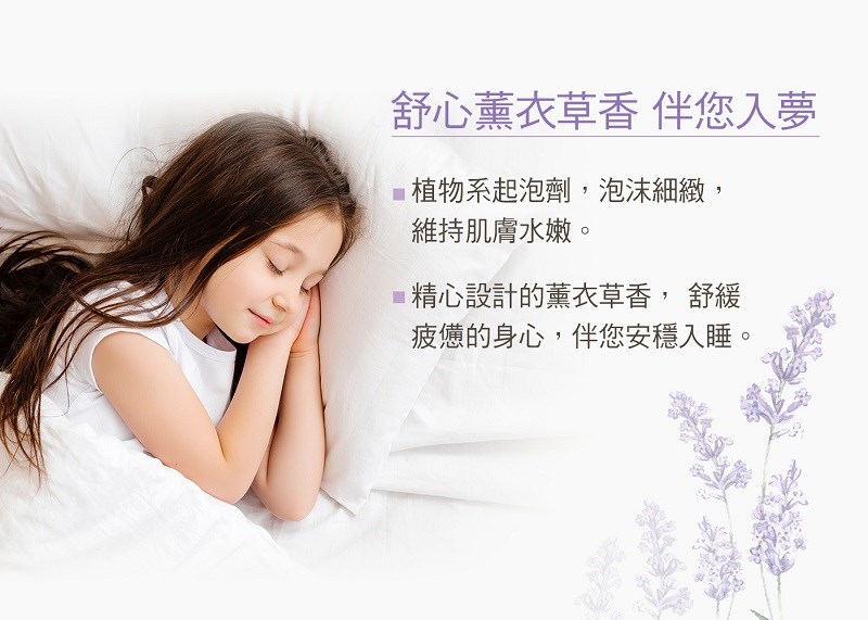 添加薰衣草精油、有機蘆薈萃取、尿囊素、積雪草萃取、有機洋甘菊萃取,在潔淨肌膚的同時,加強肌膚的滋潤與保濕,帶給肌膚柔細與水嫩的感覺,使肌膚呈現透亮光澤。天然的薰衣草氣息,宛如置身於普羅旺斯的薰衣草田園,讓身心回歸最放鬆的狀態。