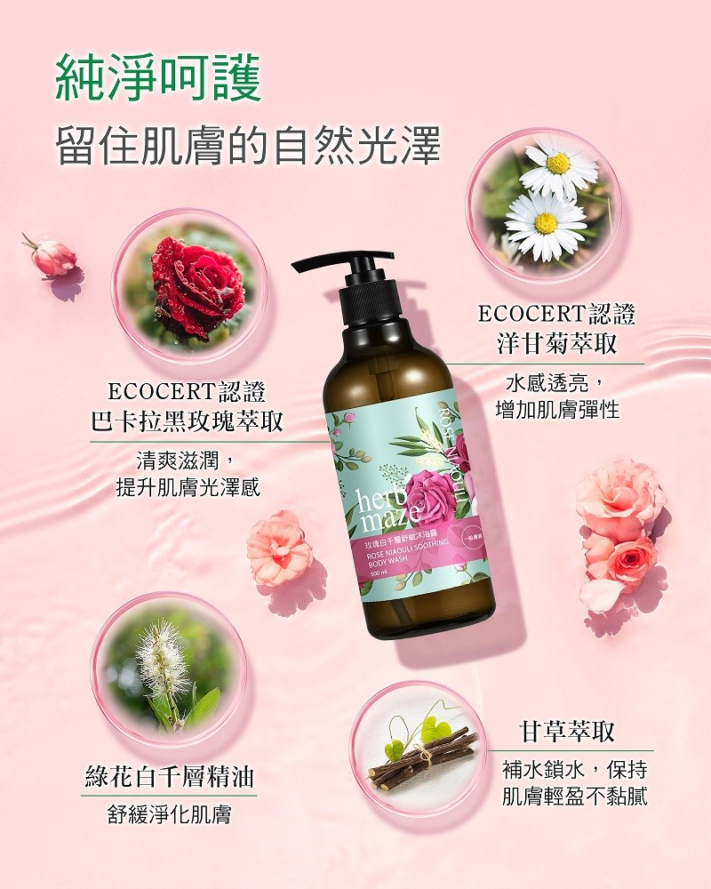品名:herbmaze 草繹 玫瑰白千層舒敏沐浴露