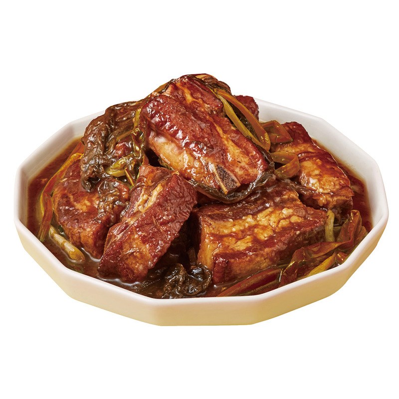主要成分:豬肉(產地:台灣)、醬油、水、蔥、老抽(糖、水、焦糖色素、食鹽、脱脂大豆片(非基因改造)、小麥)、冰糖、草果、八角、修飾澱粉。