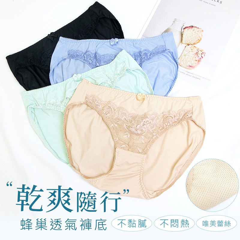 【黛瑪Daima】台灣製 (F-XL) 吸濕透氣網孔褲底蕾絲內褲-4色可選-T6010