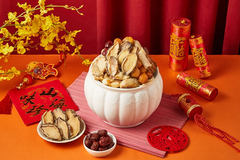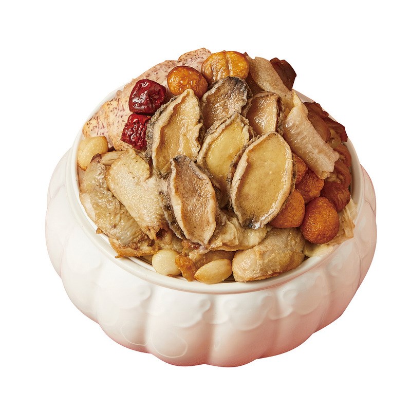 這道寶藏湯品由嚴選的鮮美鮑魚、干貝、雞肉與豬蹄筋熬煮而成,融合了芋頭、栗子、香菇等多種精緻食材,湯頭濃郁,調味獨特。每一口都讓人想要再來一碗,滋味豐富,回味無窮!