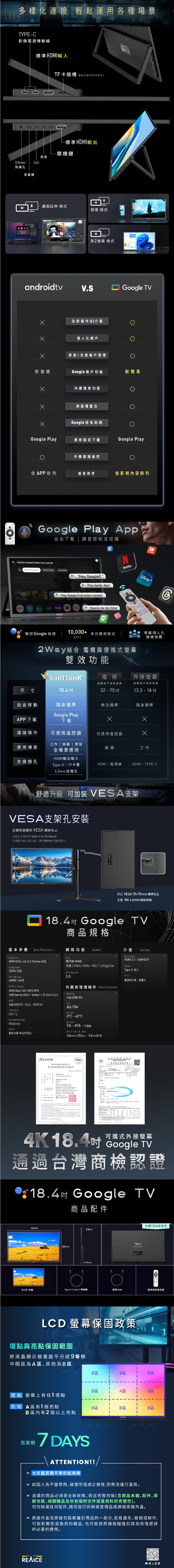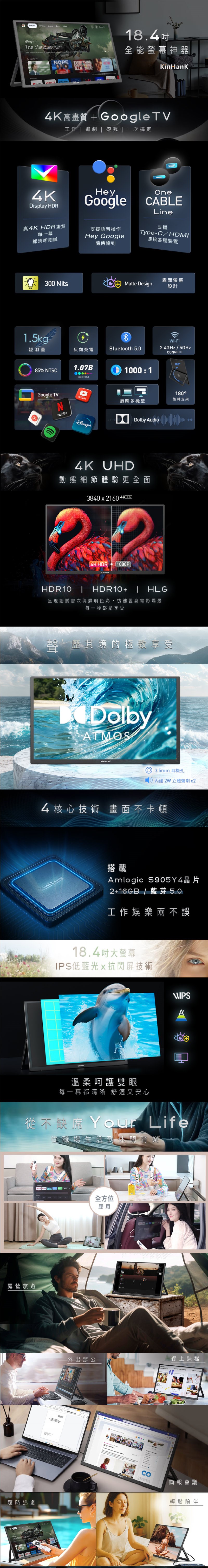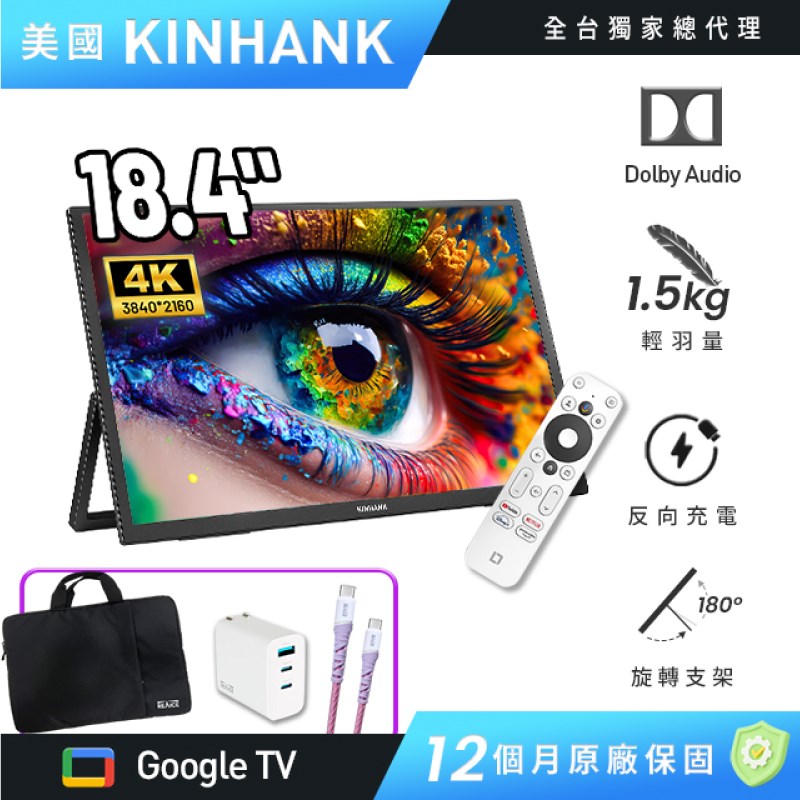 美國Kinhank18.4型IPS可攜式Google TV/外接螢幕