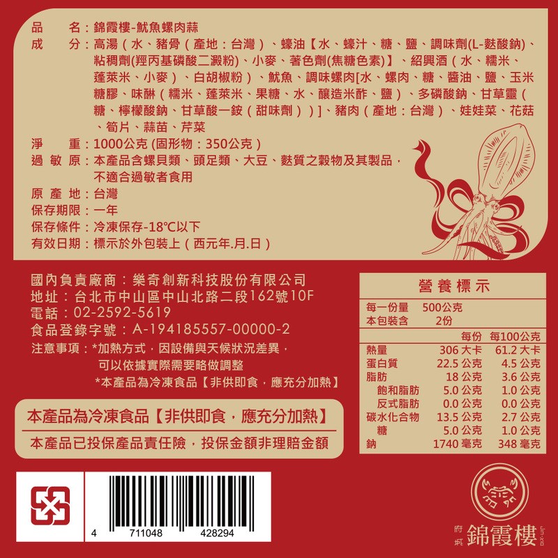 【錦霞樓】魷魚螺肉蒜-1000g(固形物350g)/盒