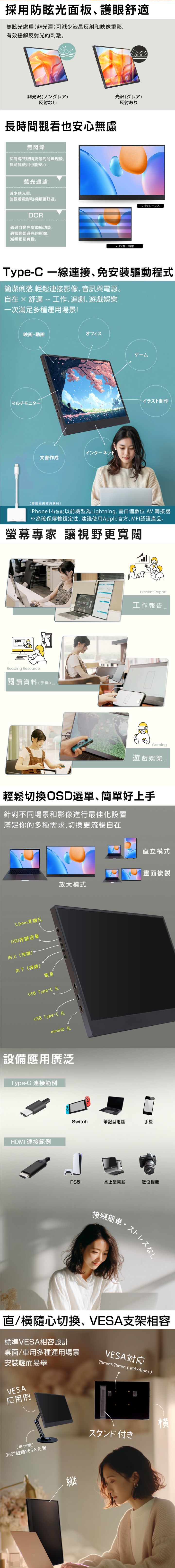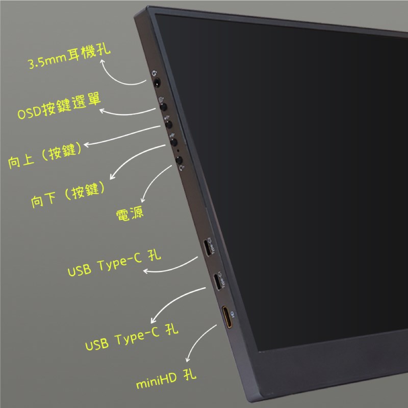 *Type C 接口的手機或筆電,要透過Type C 投屏螢幕的話手機或筆電本身要有支援"影像輸出(DisplayPort)",若需此功能的用戶請先確認手機或筆電是否支援。