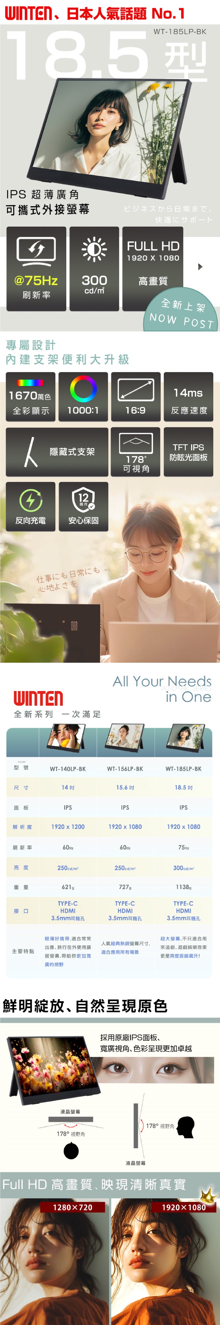日本Winten 18.5吋IPS超薄可攜式L型外接螢幕