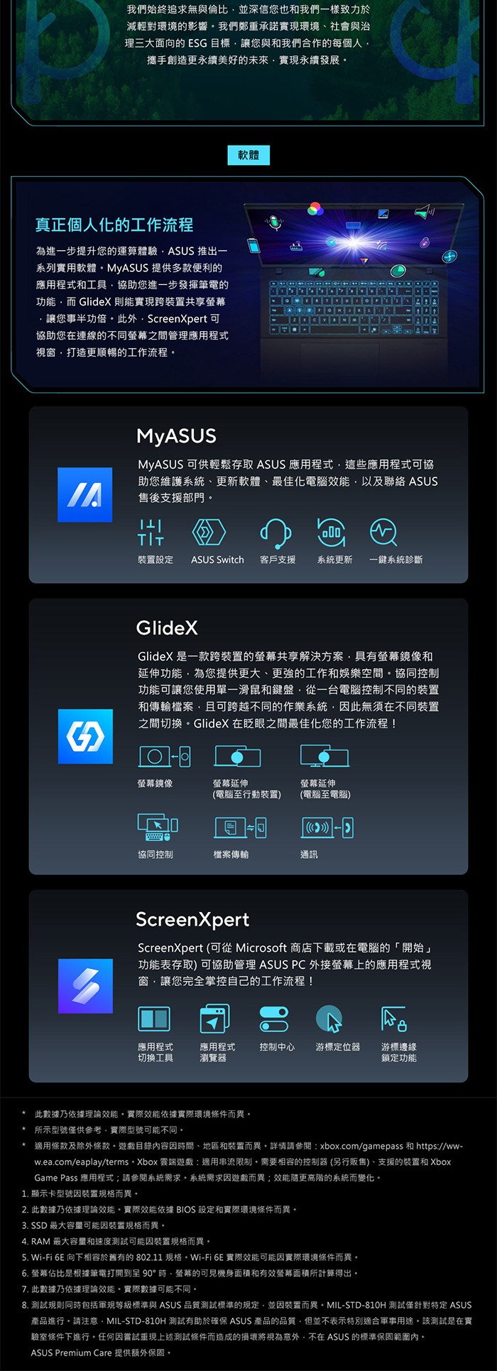 備註:以上規格如有任何問題,保固範圍及相關服務規範,請依ASUS原廠公告為主