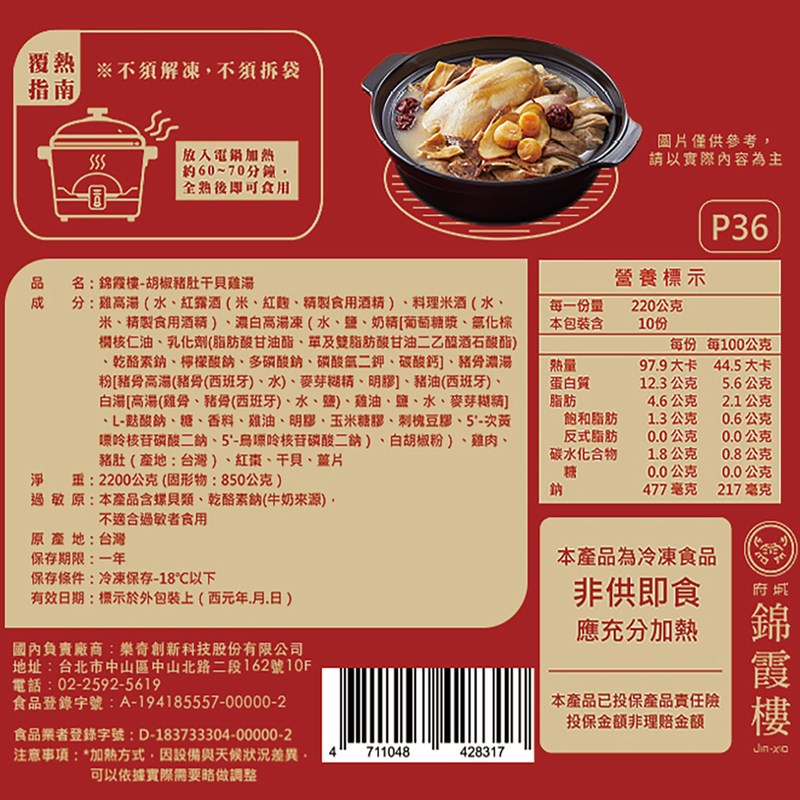 【錦霞樓】胡椒豬肚干貝雞湯-2200g(固形物850g)/盒