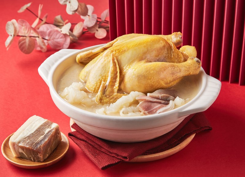 堪稱精華中的精華!來自台灣土雞,肉質軟嫩,精心挑選金華火腿頂級部位「火烔」,再將瑤柱放入鍋中一起慢火燉煮,最後加入蔬菜提升湯頭甜味,當瑤柱的鮮甜與火腿的鹹香融合,口感層次豐富,金黃色湯頭令人垂涎,一飲入口暖心美味,適合冬令時節的圍爐湯品。