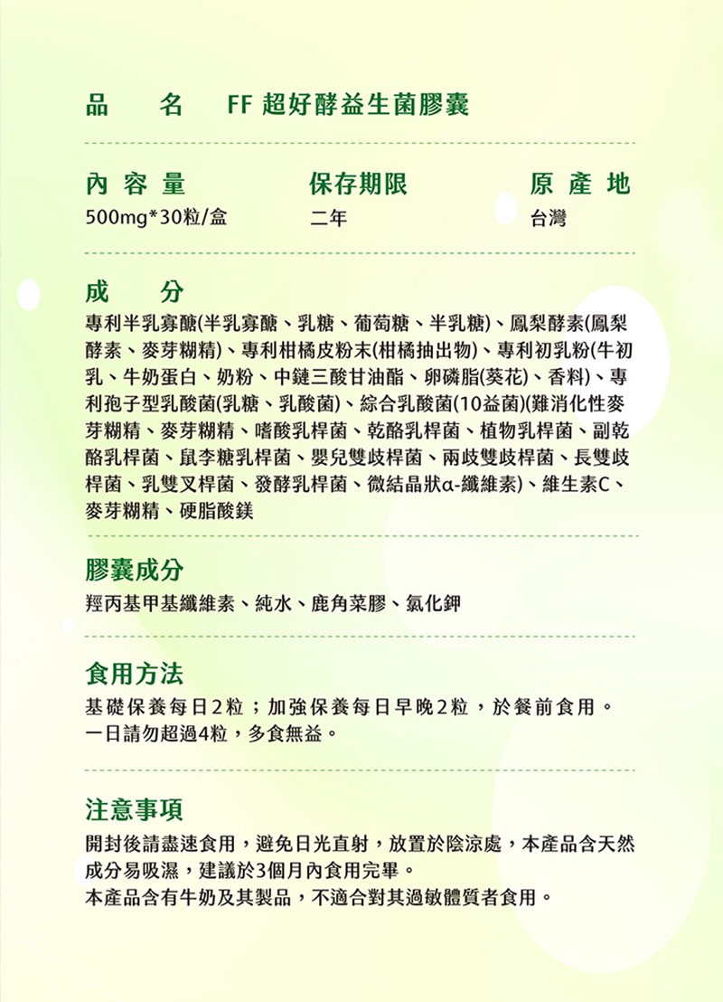 品名:【FF 艾芙】超好酵益生菌(30粒/瓶)X5