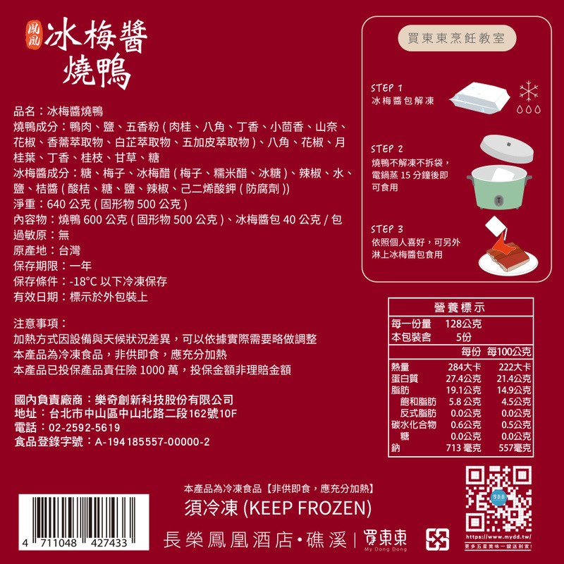 【長榮鳳凰酒店.礁溪】鳳凰冰梅醬燒鴨-640g/盒